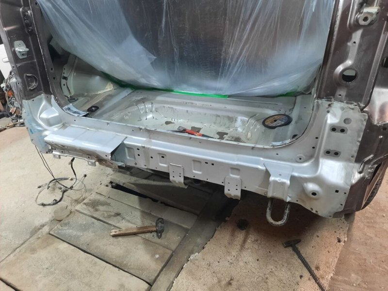 На первом этапе была вырезана задняя часть автомобиля и приварена аналогичную часть от контрактного автомобиля. Также на контракт были заменены переднее левое крыло и капот.